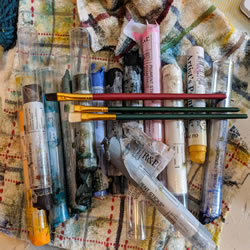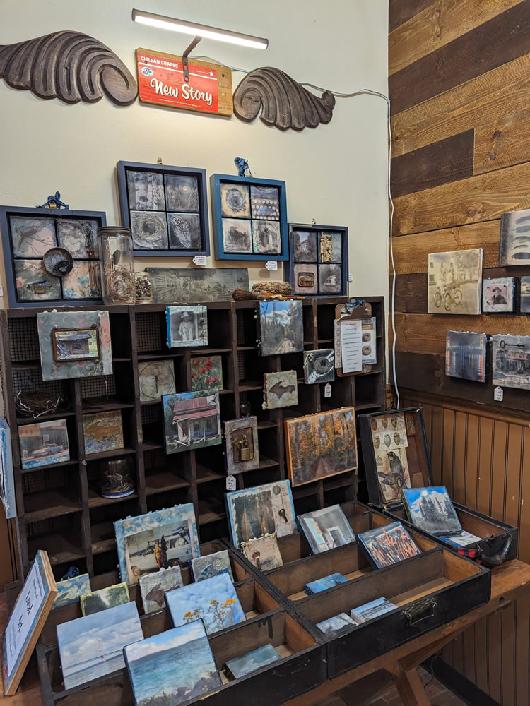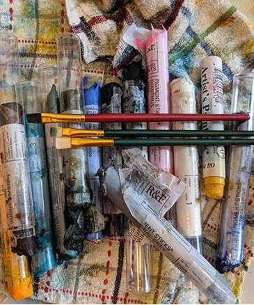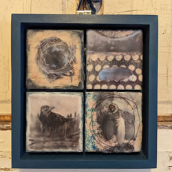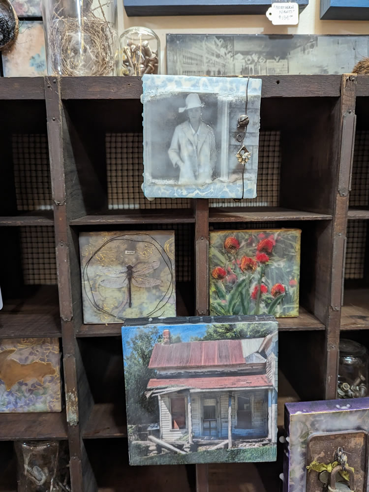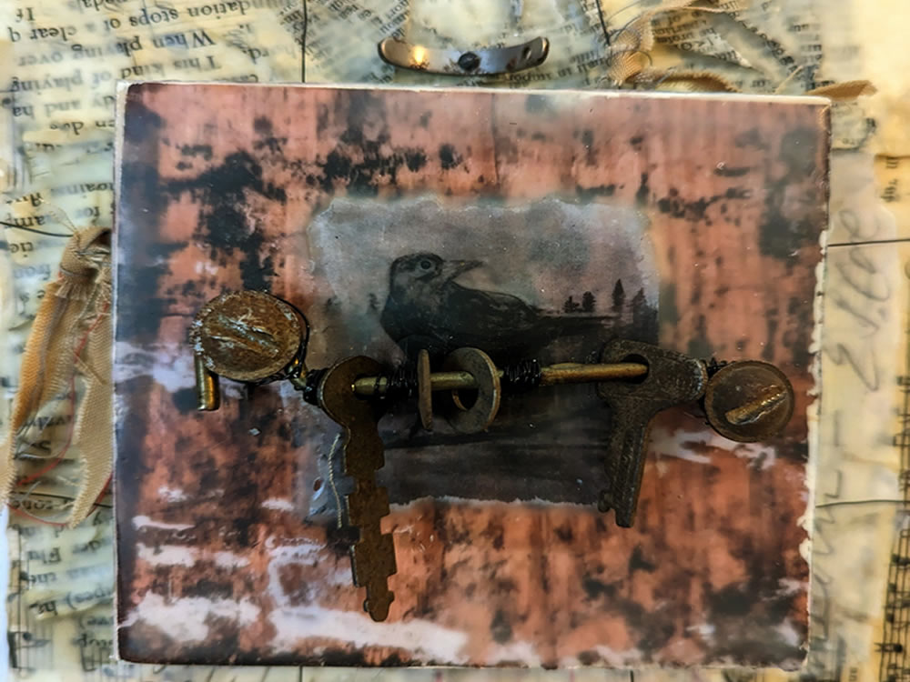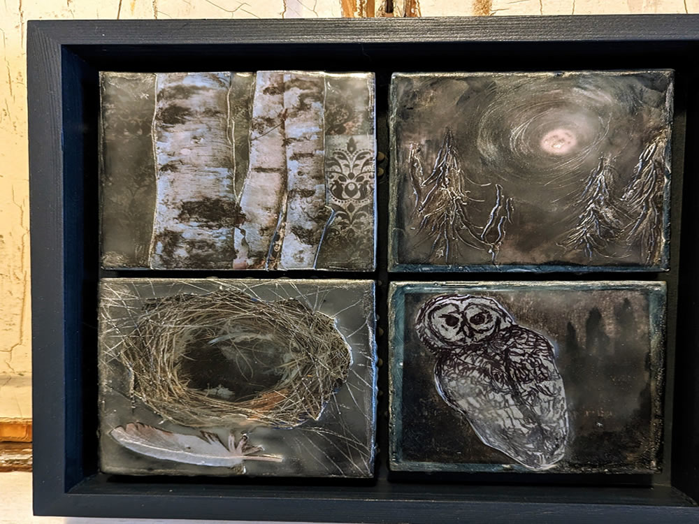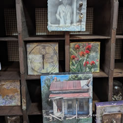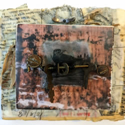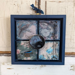 Wax Encaustic Pieces: Original mixed media art inspired by the natural world and time worn found objects. Natural + Industrial...Old + New.... Rust + Sparkle.. .Art + Found.